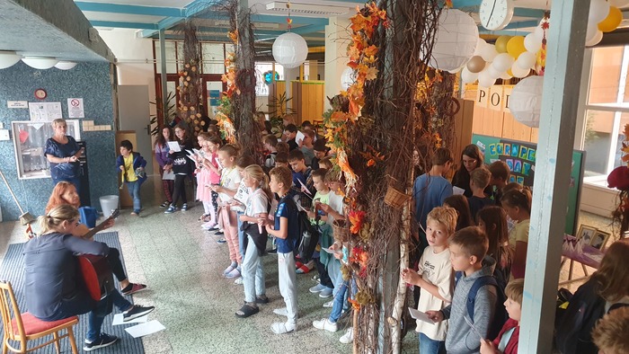 Celá akce byla ukončena hromadným zpěvem evropské hymny Óda na radost ve vestibulu školy.