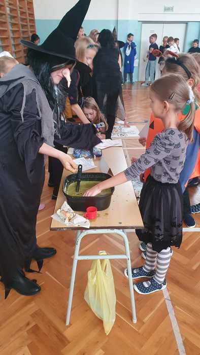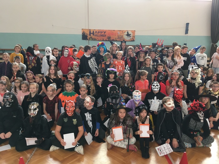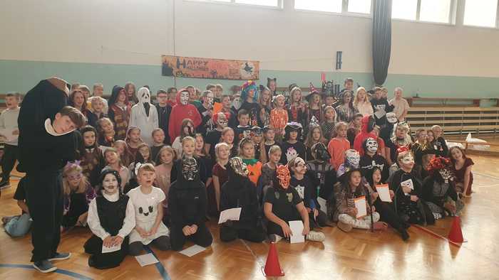Dne 31. 10. 2024 v 11 hodin se žáci třetích, čtvrtých a pátých tříd sešli v tělocvičně školy, kde pro ně byla připravena hallowenská zábava. Většina zúčastněných měla na sobě strašidelné kostýmy, některé velmi nápadité. Po poučení o bezpečnosti a vysvětlení pravidel chování začalo soutěžení a plnění úkolů s halloweenskou tematikou. Žáci skládali strašidlácké puzzle probíhali stezkou mezi zombíky, běhali slalom s míčkem na lžíci, prolézali pod pavoučí sítí, skákali v pytlích, prolézali dlouhým tunelem, trefovali se míčky do dýně, lovili a poznávali předměty ukryté v nádobě se slizem. Za splněné aktivity získávali razítka do připravené karty. Po předložení zaplněné halloweenské karty si zasloužili sladkou odměnu.