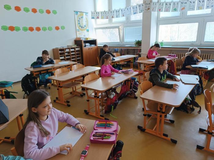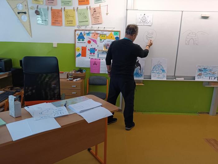 V pátek 21.2. 2025 si žáci 1.A,B, 2.A,B na chvíli zkusili být opravdovými malíři. Paní učitelky a pan učitel pozvali do školy pana Lubomíra Dostála, českého kreslíře, malíře, karikaturistu z Přerova. Pan malíř pracuje i jako učitel VV a kreslí zejména s menšími dětmi veselé obrázky. Kluci i holky navštívili Grónsko, kreslili zvířátka, která tam žijí, zkusili i Eskymáky, iglú. Bylo toho hodně. Vyučování se všem moc líbilo, všichni pracovali s velkou chutí a už teď se těší na další setkání.