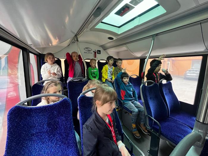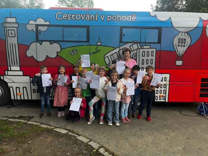 Ve čtvrtek 29.5. žáci 1.A, 1.B, 2.A, 2.B strávili jednu vyučovací hodinu v netradiční třídě. Hned ráno u školního hřiště zaparkoval ODISbus, který se stal postupně pro žáky prvních a druhých tříd školní třídou. Zapojili se tak do vzdělávacího projektu, který propojuje ekologii, dopravu a zábavu přímo na čtyřech kolech. Na děti čekal zajímavý program. Hledaly společně s panem řidičem Čeňkem a Vaškem odpověď na různé otázky: