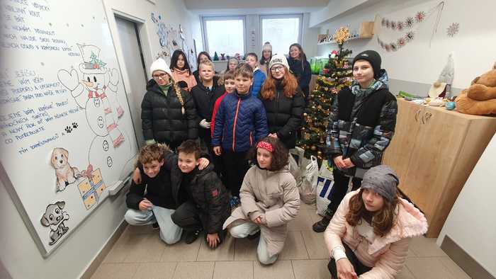Třída 6. A se v předvánočním čase rozhodla udělat radost těm, kteří si sami pomoci nemohou. Zorganizovala proto akci Psí dobroobchod, jejímž cílem byla sbírka na podporu pejsků z útulku v Třebovicích.