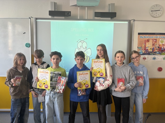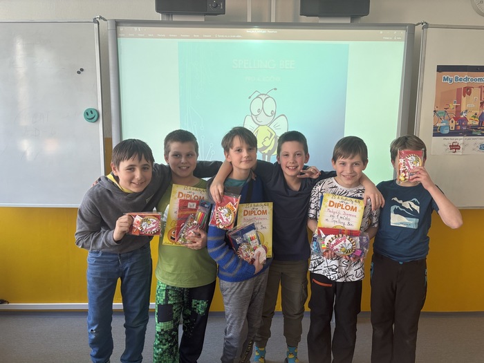 Ve středu 11. března 2026 proběhl již sedmý ročník anglické soutěže pro žáky čtvrtých a pátých tříd ve spelování, nebo-li hláskování anglických slov. Za čtvrtý ročník soutěžili žáci IV. B Matyáš D., Daniel G., Hubert M., Nikita M., Antonín S. a Filip Š. V pátém ročníku přišli soutěžit za třídu V. A žáci Sofie K., Karolína M., Vojtěch O., Markéta O., třídu V. B reprezentovali Tomáš N., Lukáš N. a Oliver P.