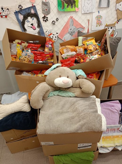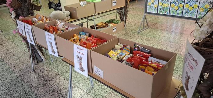Od 12.5. do 16.5. proběhla ve škole A. Hrdličky sbírka. Prázdné krabice se rychle plnily různými dobrotami. Nechyběly ani deky, přikrývky, pelíšky nebo i staré ručníky a polštáře.