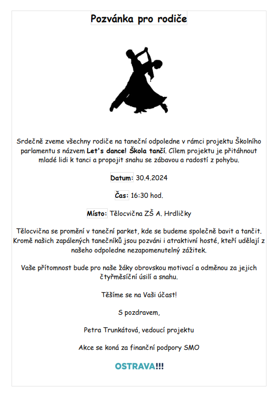 Ještě jste neslyšeli o skvělém projektu našeho Školního parlamentu s názvem Let´s dance! Škola tančí?